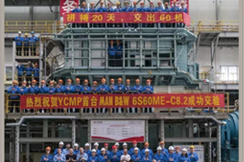 2018年,首台YCMP-MAN B&W6S60ME-C8.2主机成功交验,刷新中国低速机装配速度